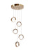 Design: Five cascading gold rings with crystal-like acrylic accents, suspended at varying heights for a dramatic modern look