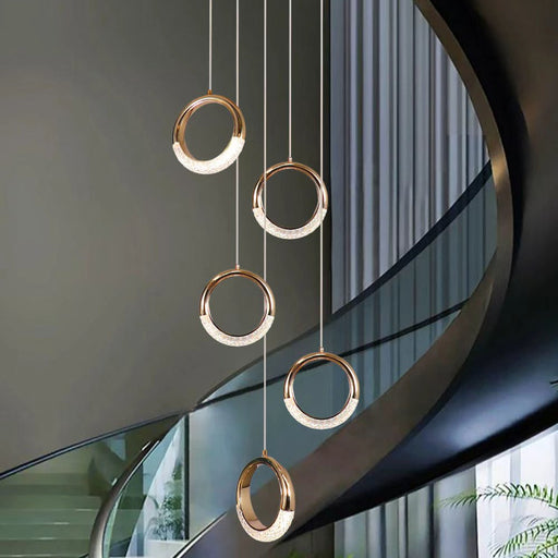 SKU: CD201MY0013GD/RIn stockBring modern elegance to your home with the Luna Cascade Ring Pendant Light, designed to make a striking statement in stairwells, entryways, and hi...