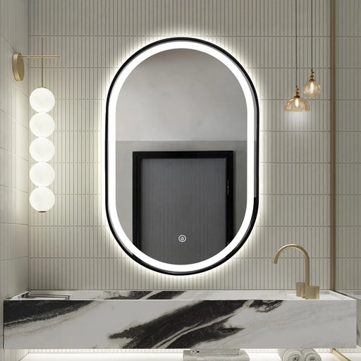 Black Oval LED Mirror with 3-Color Adjustable Lighting 500×700mm