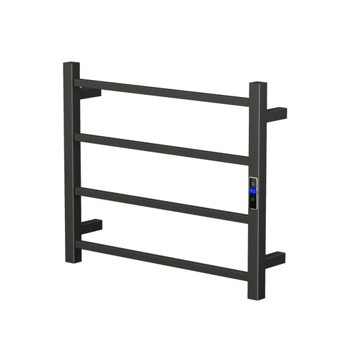 Black Electric Heated Towel Rail 4 Bar 600mm Timer & Temp Control
