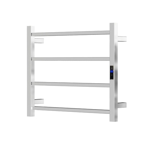 Silver Electric Heated Towel Rail 4 Bar 600mm Timer & Temp Control