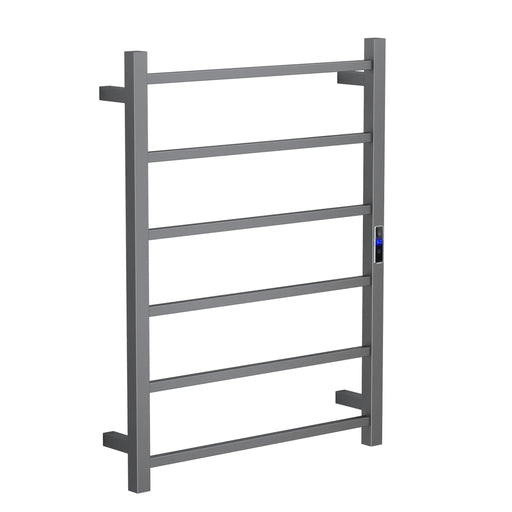 Gun Metal Electric Heated Towel Rail 6 Bar 600mm Timer & Temp Control