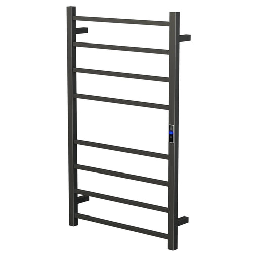Black Electric Heated Towel Rail 8 Bar 600mm Timer & Temp Control