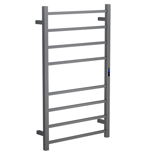 Gun Metal Electric Heated Towel Rail 8 Bar 600mm Timer & Temp Control