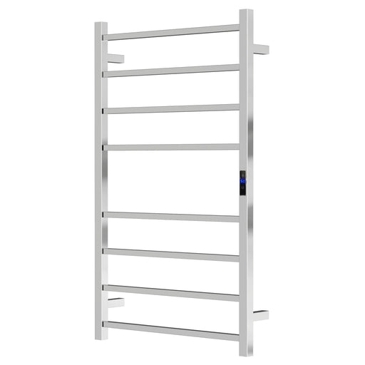 Silver Electric Heated Towel Rail 8 Bar 600mm Timer & Temp Control